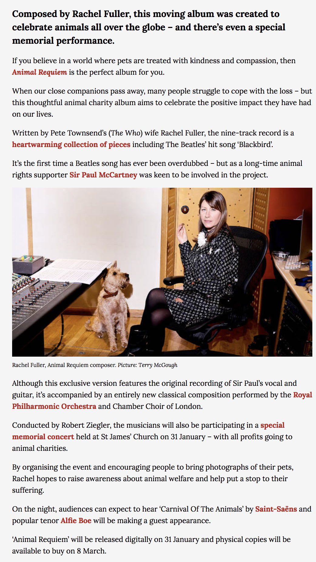 Animal Requiem is an album to celebrate and honour all animals from composer Rachel Fuller.